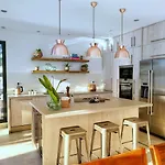 Die Bohospanishvilla bietet einen Flachbildfernseher mit Satellitenkanälen und ein Fernsehen mit mehreren Kanälen sowie verfügt über einen Patio und eine Essecke, wo Gäste einen Ausblick auf den Pool bewundern können. Ein Bügeleisen/Bügelbrett und eine Klimaanlage sind für einen angenehmen Aufenthalt zur Verfügung gestellt. Zur Ausstattung des Badezimmers gehören auch eine begehbare Dusche und eine getrennte Toilette. Die Badezimmer sind zudem mit einem Haartrockner und einem Wäschetrockner für Ihren Komfort ausgestattet.